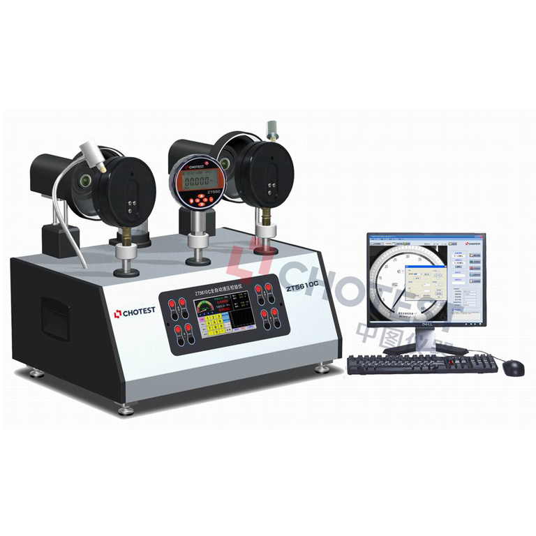 (1)根据被检一般压力表的量程选择合适的压力校验台和标准表,将标准压力表连接到压力校验台并保持通信。 (2)先通过造压控制数显表,设定好要升压的压力上限,然后打开压力调节阀使压力泵通大气,此时,如果标准表的压力显示不为零,按下“清零”键使压力显示为零,消除压力测量的零位误差。