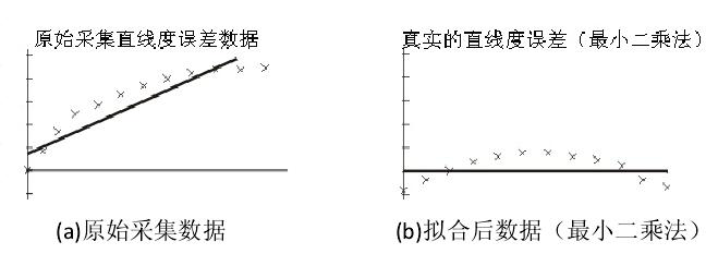 因为斜率误差是稳定误差,因此可以采取上述的公式将其从直线度测量结果中分离出来,亦可以采用两端法拟合或者最小二乘法拟合将其分离出去。