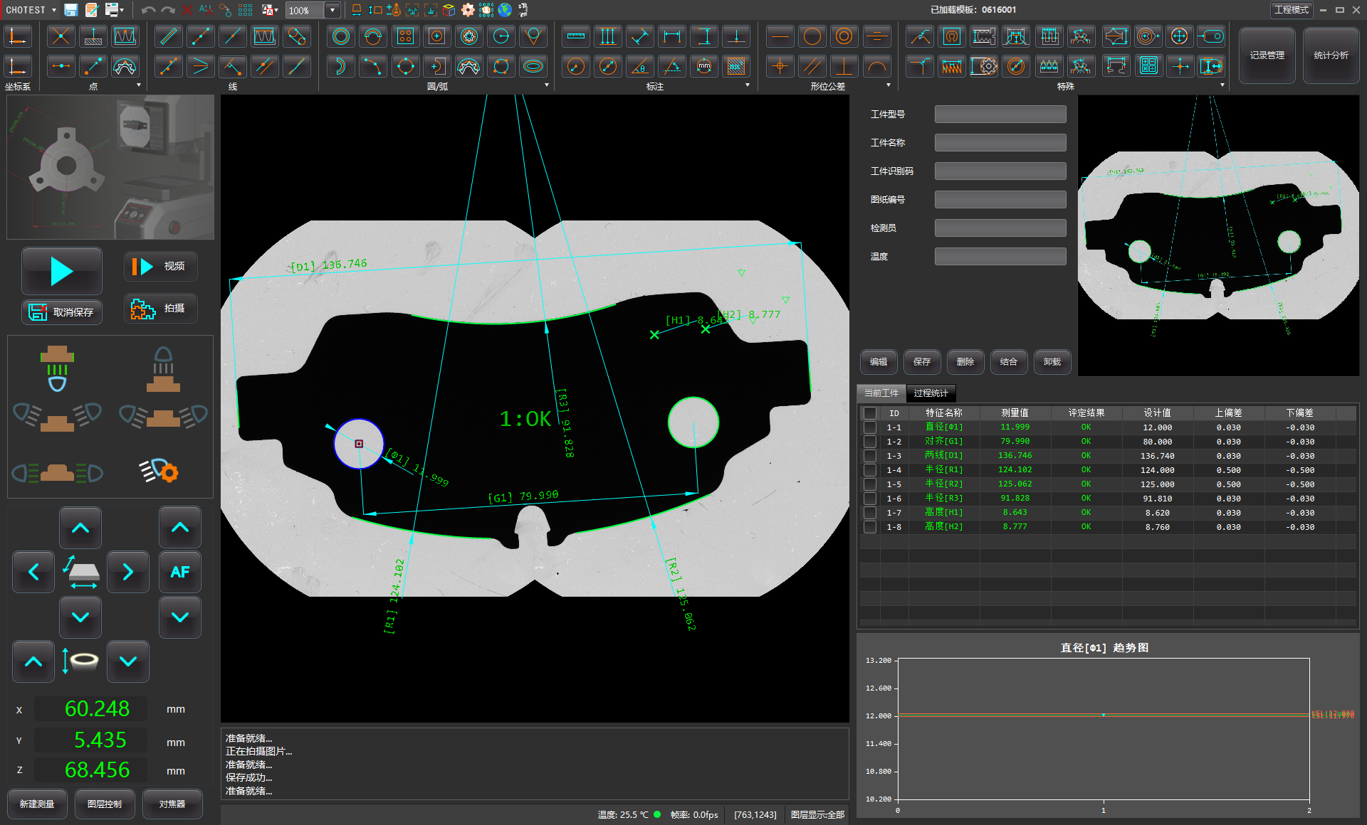 传统方法主要采取影像仪检测,无法一次性测量所有尺寸,对人员要求高,效率很低。