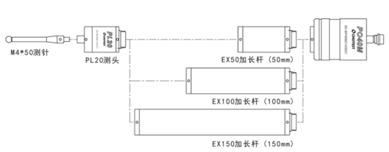 PO40M 是一款模块化测头,搭配 PL20 测头使用,中段可加装不同长度的加长杆-- EX50、EX100、EX150,提供了适用于不同机床的各种解决方案。广泛应用于大尺寸腔体类、箱体类零件测量,叶片测量,复杂曲面的模具测量。