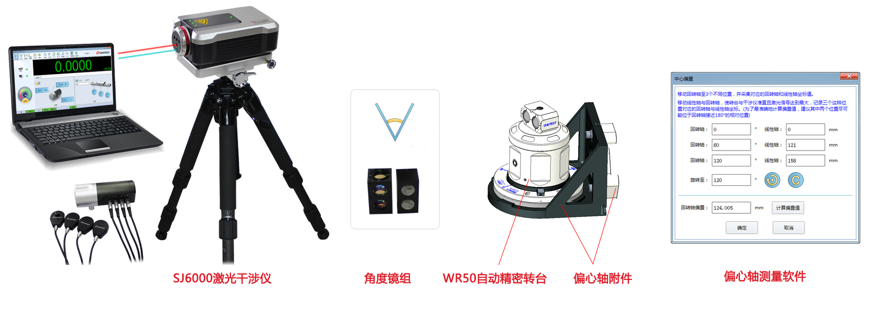 测量配置:SJ6000激光干涉仪主机+角度镜组+WR50自动精密转台+偏心轴附件+偏心轴测量软件。