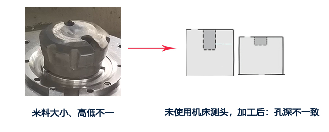 客户痛点:毛坯来料高度尺寸不一及不同方向平面高度不一致,导致加工钻孔出现孔深不一,生产合格率较低;