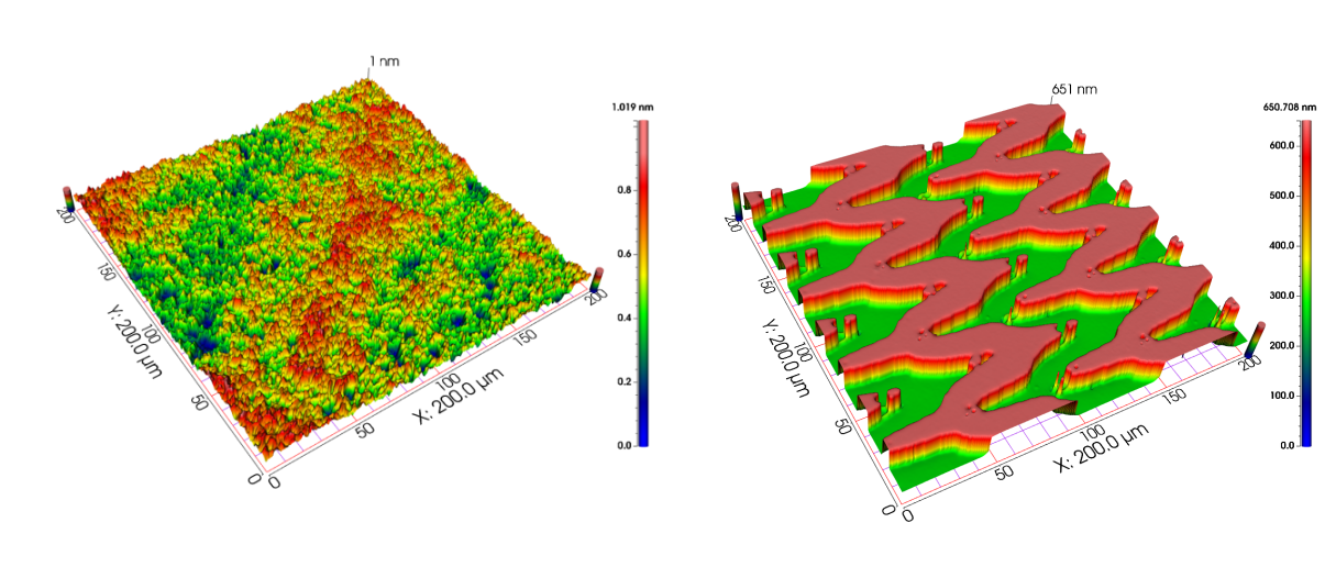 图.客户现场演示的Sa 0.2nm的超光滑3D形貌和百纳米级微结构3D形貌