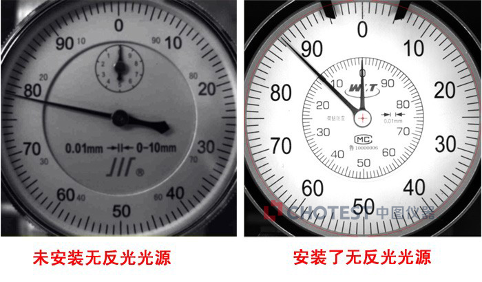 中图蘑菇视频 研发的无反光光源专利技术,彻底地解决了这个问题。安装无反光光源后,拍摄出的图像清晰度明显更高,确保读出的数值更精确,特别是检定表盘为凸面的指示表时,无反光光源很好地解决了照明与反光的矛盾,提高了数据的可靠性。