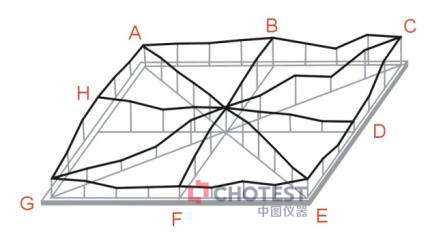 测量一个平面的平面度,需要在平面上采集若干条测量直线,平面度测量有常用的方法为:对角线法,又称米字法。