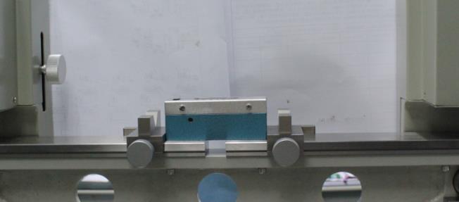 1)将条式水平仪平稳放置在工作平台的中间位置,锁紧两侧定位块使条式水平仪固定,如图2所示。
