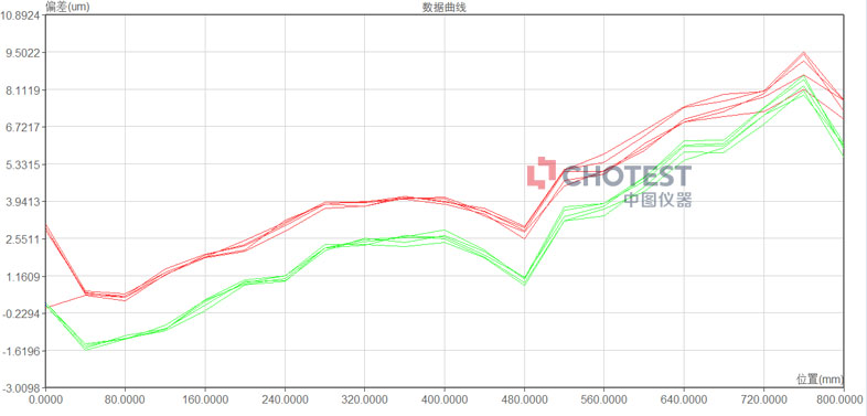 实验结果:按GB/T17421.2《机床检验通则》2000版分析标准得出结果,镜组安装高度偏离设备运动轴线越远,检测结果中重复精度以及定位精度就越差。