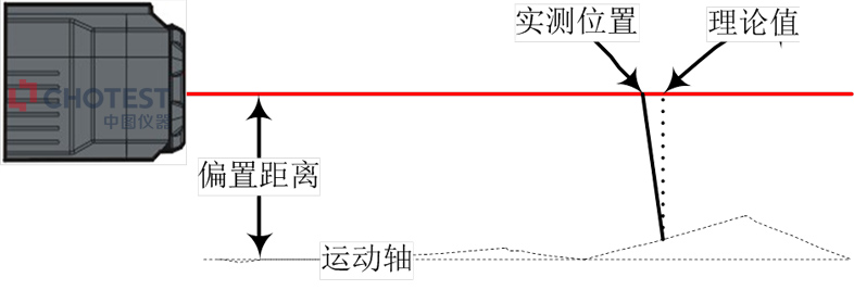 因测量光学镜组的安装高度不在被测设备的运动轴上引起的测量误差称之为阿贝误差。产生的原因是设备移动时存在俯仰、扭摆差,因此光学镜组与运动轴偏置距离越远,引起的阿贝误差越大。