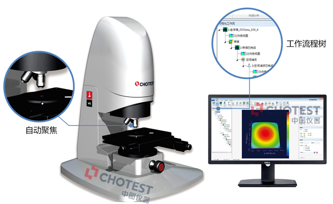 直观的操作界面,让您对操作流程一目了然,自动聚焦,助您一键实现测量过程;可视化的工作流程树,一键激活的图库管理功能,所见即所得的同步分析功能,更有一键分析功能,批量测量不用愁。