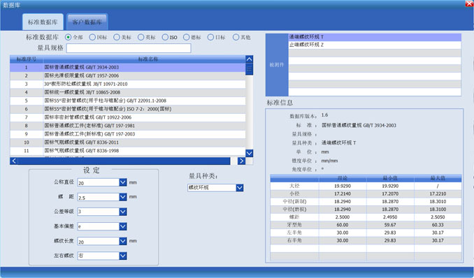 SJ5100高精度光栅测长机测量软件系统内置了国标、ISO、BS、ANSI、DIN、JIS等各行各业的标准,累积达100多份,目前还在持续更新中。客户还可以在客户数据库中自定义标准。软件界面采用向导式操作设计,初学者非常容易掌握。