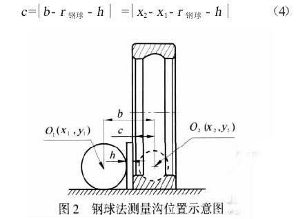 ⑷分析时注意沟道的沟形误差对测量结果的影响,若被测套圈的沟形误差较大时,不能直接用由沟道拟合成的圆的圆心坐标直接计算沟位置,而是要用沟道的最低点坐标值来计算沟位置。