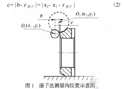 先将已知半径为 r滚子的和被测套圈按图1所示位置安装固定,由轮廓仪测量出滚子外径的轮廓及套圈沟道的轮廓,利用轮廓仪坐标分析,得到滚子圆心o1与滚道曲率圆心o2在x方向坐标x1、x2,则:滚子圆心o1与滚道圆心o2水平距离为: