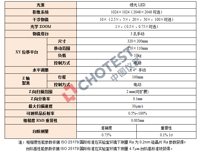 SuperView W1 系列光学3D表面轮廓仪主要技术指标: