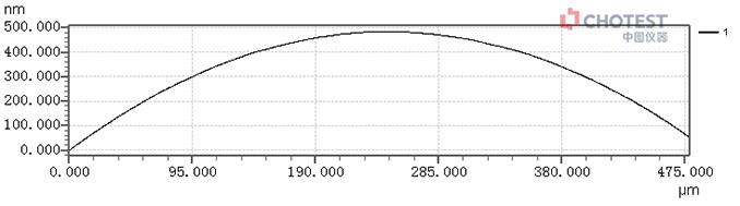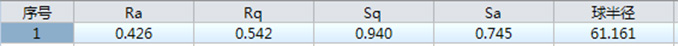 上图为某型号双胶合透镜,取透镜上表面进行检测,得其粗糙度小于1nm,曲率半径为61.2mm左右,与理论值61.5mm仅差0.3mm左右,考虑到光学透镜的加工容许误差为2%,因此所测值与理论相符。