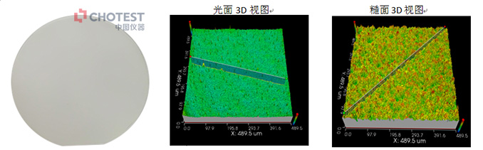 蓝宝石俗称刚玉,主要成分是氧化铝(Al₂O₃),由于其优良的物理和化学特性,常用于制成各种光学元件,如摄像头保护玻璃、表镜、窗口片、棱镜等。一般加工出来的蓝宝石玻璃分为单面抛光和双面抛光两种,抛光程度——也就是表面粗糙度直接决定了其表面质量等级,下图为一片单面抛光蓝宝石玻璃的光面和糙面的粗糙度检测图像及数据。