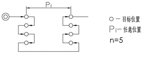 在全长范围内,选不少于两个目标位置,每个目标位置按不同距离正、负方向各循环五次;其轴线双向重复定位精度数值R按GB/T17421.2规定执行。