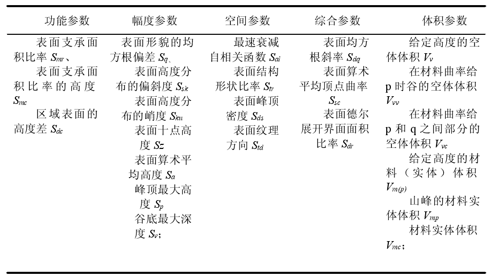 2005 年,在ISO/TC213的最新标准草案ISO/TC213N756中对表面三维表征参数进行了详细分类,主要分为功能参数、幅度参数、空间参数、综合参数、体积参数共5大类23个参数,在幅度参数中就包括Sa。