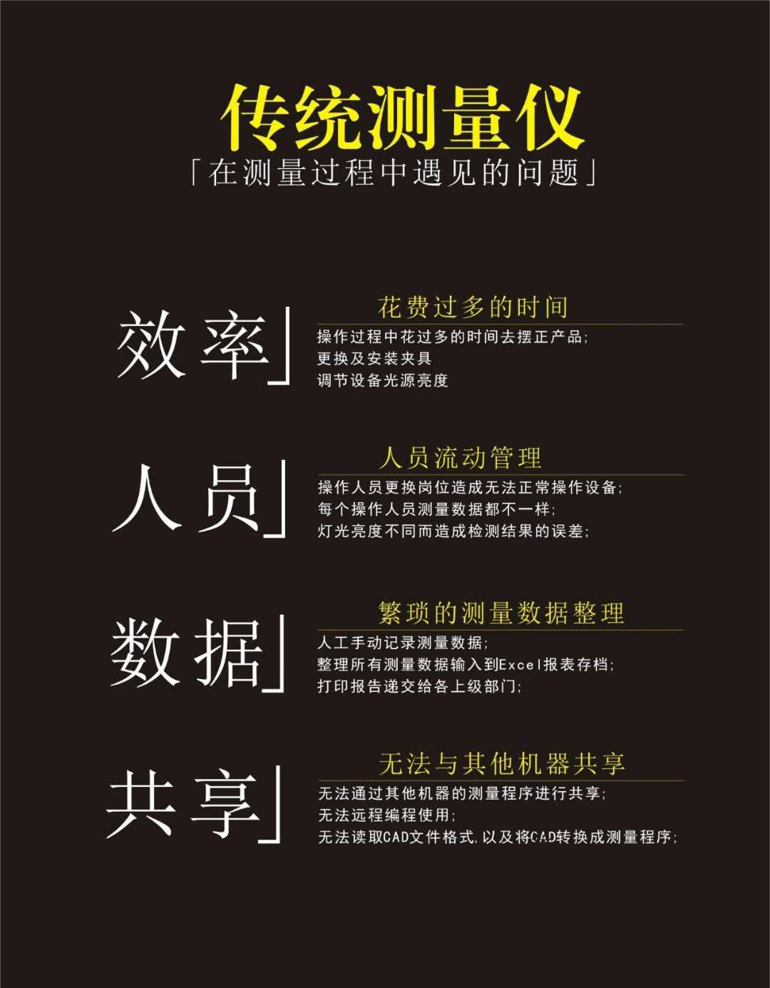 多年来精密测量业里流行着这么一句话:影像测量仪是传统投影仪的替代蘑菇视频,影像测量仪将取代传统投影仪。如今我们将再一次打破传统,一键式测量仪将取代影像测量仪和传统投影仪。